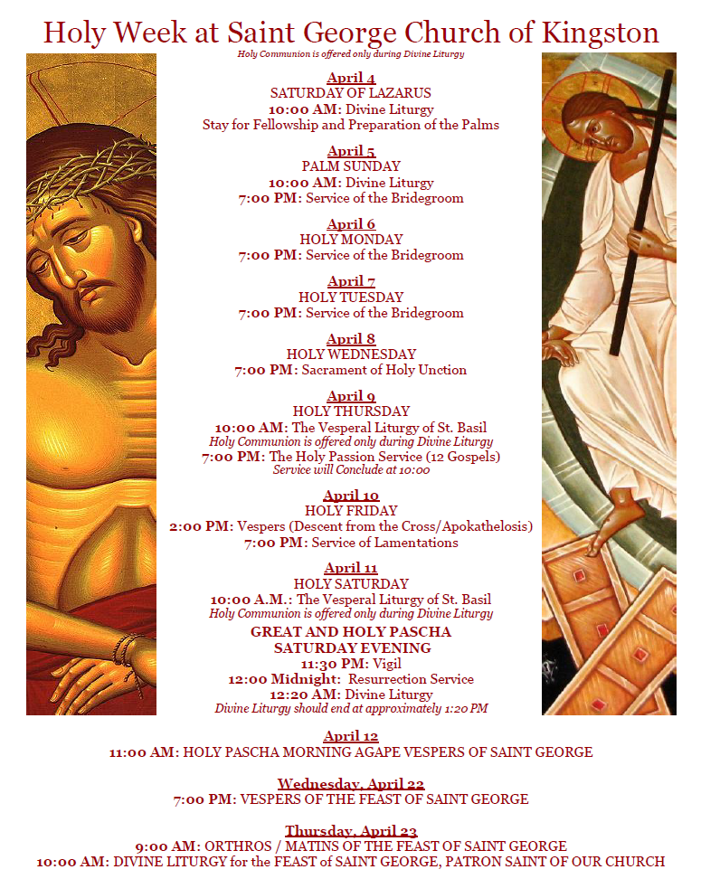HOLY WEEK: We offer a full schedule of Service for Holy Week and Pascha (Easter)